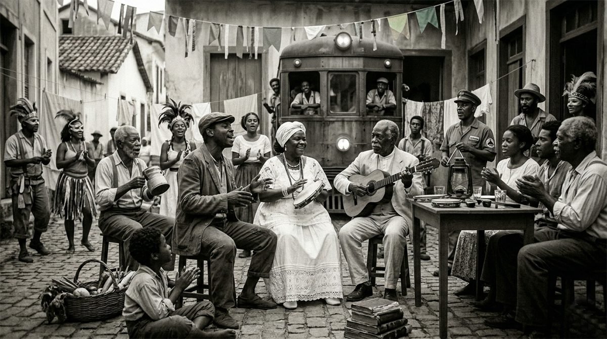 Enquanto a Avenida Central abria os braços para o foxtrot e a valsa, os subúrbios e os morros pulsavam com um repertório musical radicalmente diferente. Eram os batuques baianos, os lundus, os maxixes, os candomblés e as rodas de partido-alto que davam forma ao cotidiano das comunidades afro-cariocas. Esses ritmos não eram apenas entretenimento: eram formas de manter viva a memória de África em terra brasileira, de afirmar identidade num país que, há apenas alguns anos, havia abolido formalmente a escravidão, mas nada havia feito para integrar os ex-escravizados à vida econômica e social.